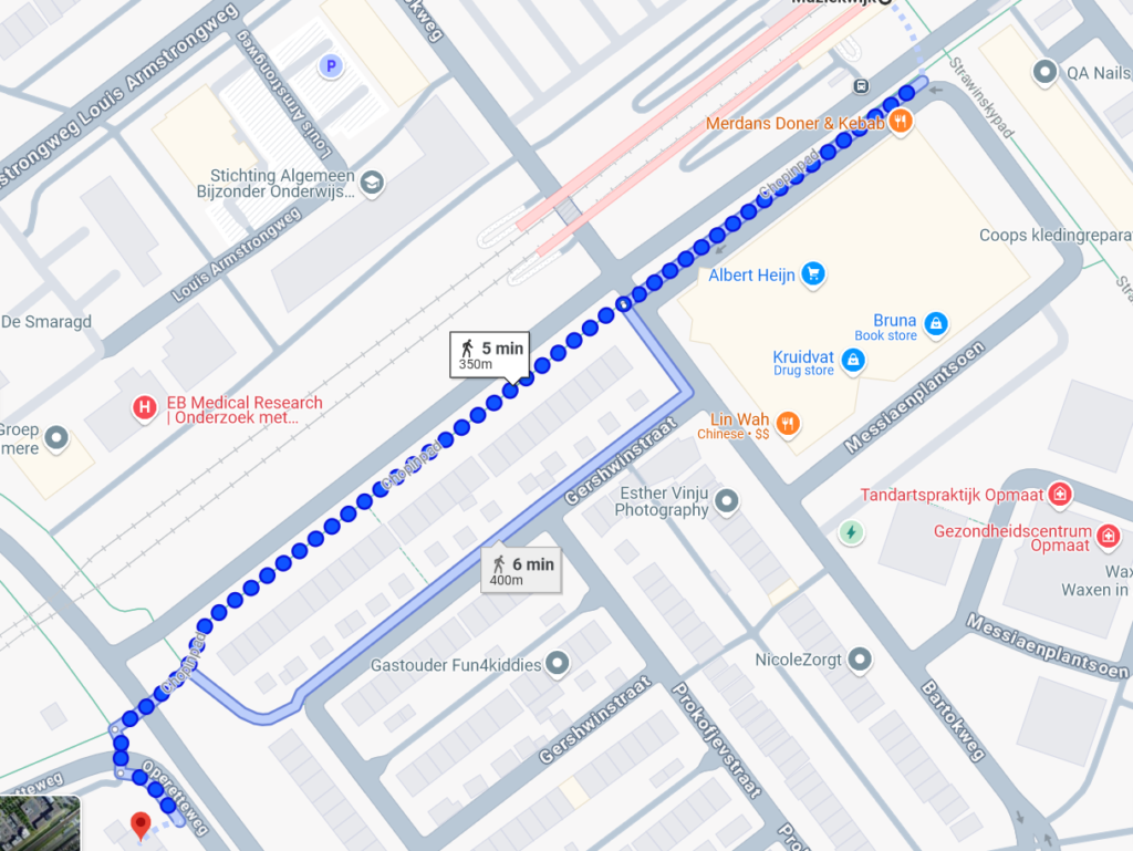 -Vanaf de A1 en A6 richting de Hogering/N702/S101 naar Almere Stad. Neem de afslag N702 vanaf de A6. Ga door op de Hogering, richting de Hollandsedreef richting de Operetteweg (gratis parkeren voor de deur).